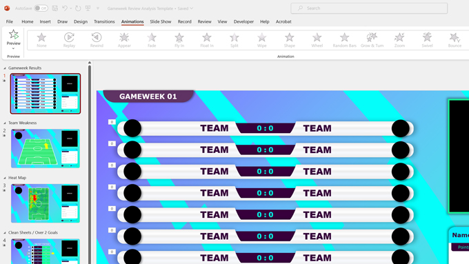 The template features a 3D interactive football pitch that enables you to create dynamic animations and smooth transitions.
